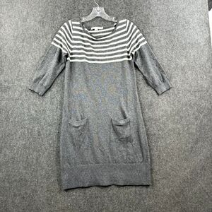 Boden Sweater Dress Women’s 6 Gray White Striped ¾ Sleeve Pockets Cashmere Blend