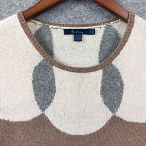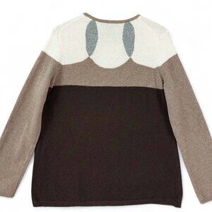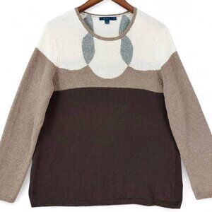 Boden Sweater Womens Sz L Brown Tan Cream Colorblock Wool Crewneck Pullover