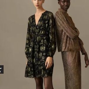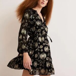 Boden Swing Mini Dress Firework Jacquard 10L Black Metallic Silver