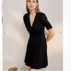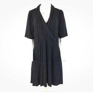 Boden Sz 20 Fixed Wrap Jersey Dress In Black Viscose Stretchy Pullover Style