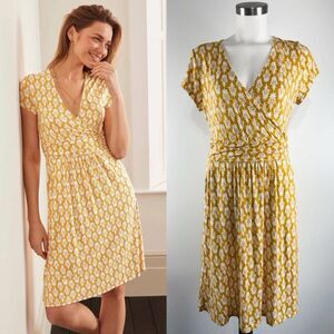 Boden Sz 8 Lola Mini Dress Faux Wrap Casual Brimstone Yellow