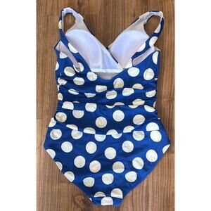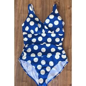 Boden Talamanca One Piece Swimsuit Bathing Suit Polka Dot Blue White Size 10