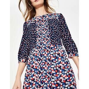 Boden Tall Hotchpotch Pintuck Dress Womens 16L Navy Multi Floral Print
