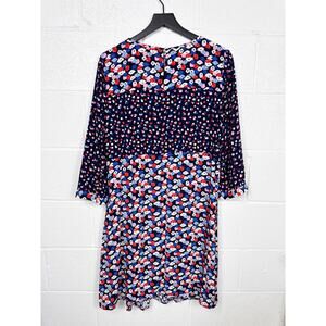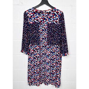 Boden Hotchpotch pintuck floral dress in women’s size 16 Long features a navy-multi print and pleated front detail.