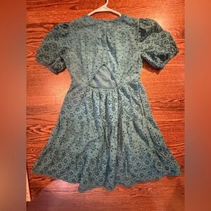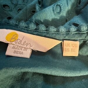 Elegant teal dress with intricate eyelet pattern. Ideal for versatile styling.