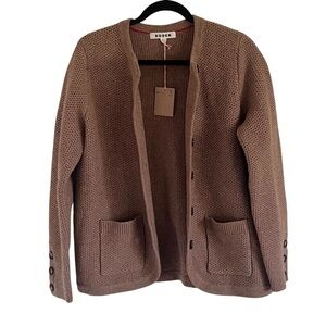 New with tags! Brown, cozy cardigan with the structured shape of a jacket. 80% wool 20% polyamide. In great condition.