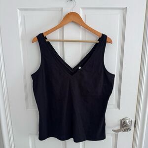 Boden The Cotton V-Neck Relaxed Sleeveless Tank in Black Size Large