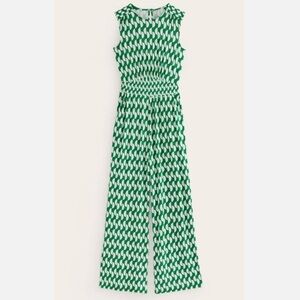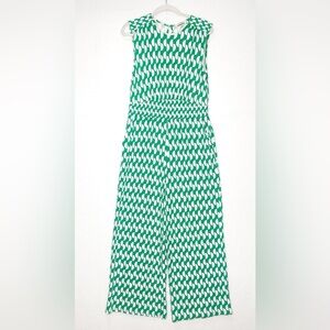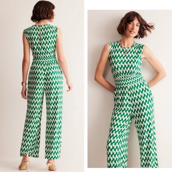 Boden Thea Jersey Jumpsuit Emerald Green Geo Wave Print Size 10 Geometric Print