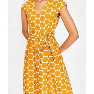 Boden Tori Midi Dress 10 Polka Dot V-Neck Tie Waist Cotton Lined Ivory Yellow