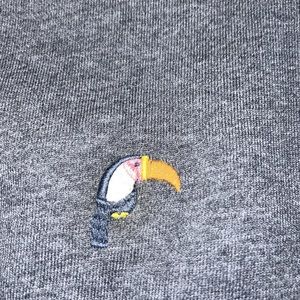 Boden Toucan sweatshirt. This a dark gray long sleeve sweatshirt. There a embroidered colorful toucan birds on the front back and sleeves. Great for layering. The inside is super cozy and warm. NWT.