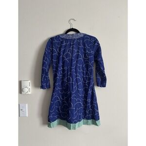 Boden Toulon Tunic Top Blue White Embroidered Scoop Neck Cotton US 4 Small Green