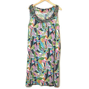 Tags: tropical, floral, print, pattern, scoop neck, sleeveless, midi, below the knee, long, plus size, cotton, soft, loose fitting, casual, brunch, beach, vacation, easter, spring, summer