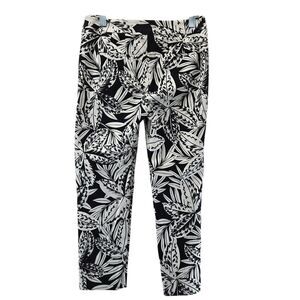 Boden Tropical Pants Womens 8 Black White Palm Tree Straight Leg Crop Resort