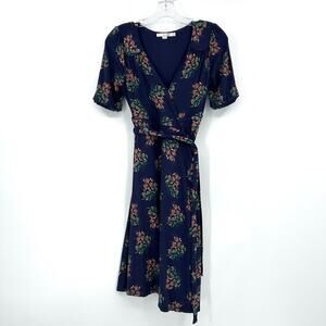 Boden True Full Wrap Midi Dress in Navy Floral Print Lightweight Womens Size 6P