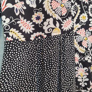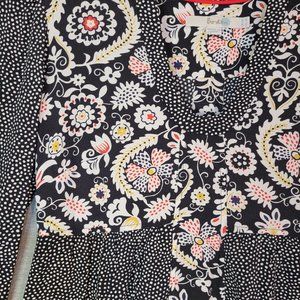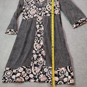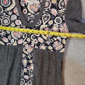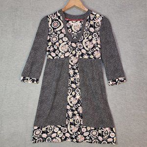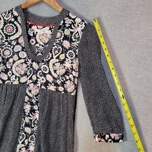 Boden Tunic Dress Womens 2 R 3/4 Sleeve Black Floral Polka Dot