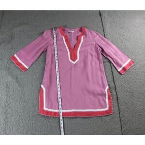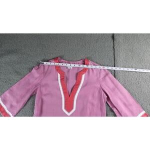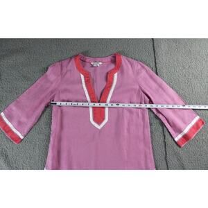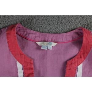 Boden Tunic Top 6p Pink White Orange V Neck Linen Pullover 3/4 Sleeve