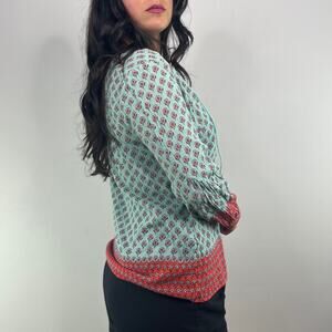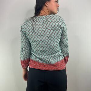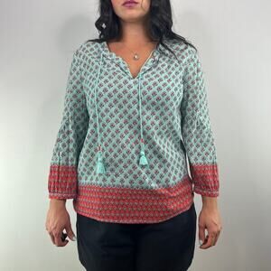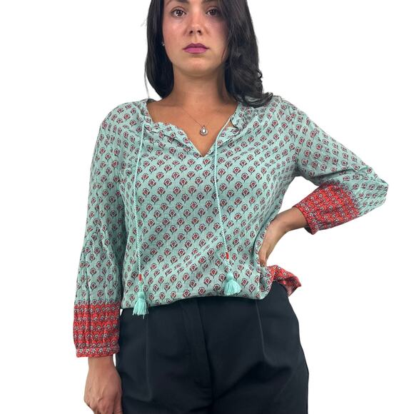 Boden Turquoise Floral Tunic Blouse. Excellent gently used condition. Tie front. Elastic at sleeves. Lightweight material. M39