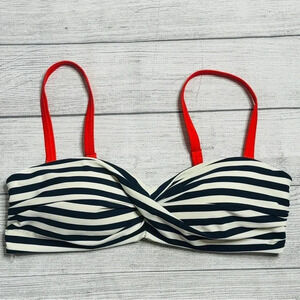 Boden Twist Front Navy White Striped Swim Bikini Top Size 12