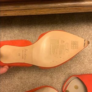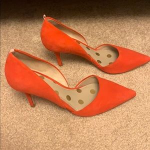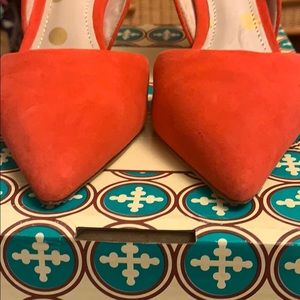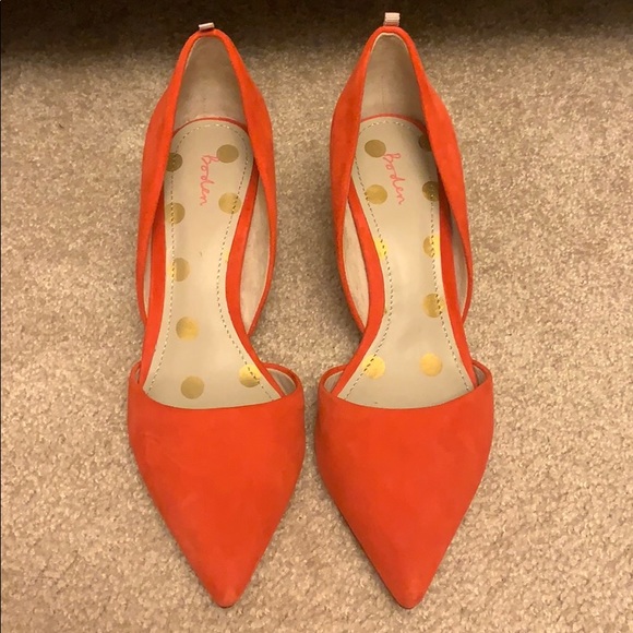Boden heels in perfect condition. Suede. The Two-Part Court, worn inside office, once. Shoes are clean. No scuffs. Color is snapdragon.