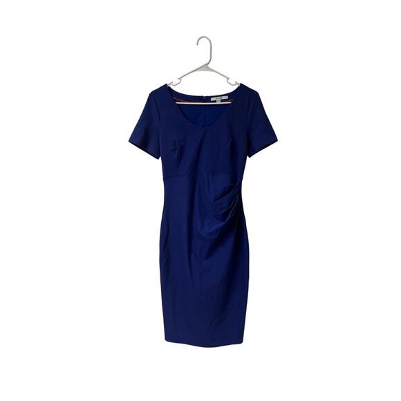Boden US 6 Navy Blue Midi Length Short Sleeve Dress Rouching Pencil Work Career