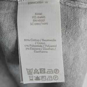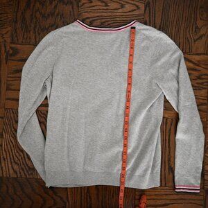 Boden V-Neck Sweater – Light Gray with Striped Trim – Small