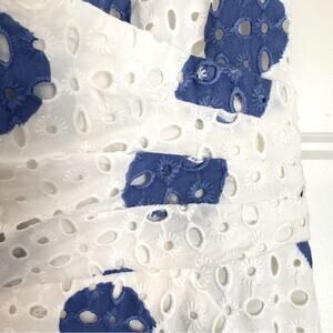 Boden Vanda Broderie Polka Dot Sleeeveless Eyelet Midi Dress in White and Blue