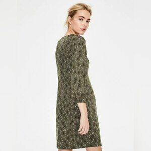 Embrace elegance with the Boden Vanessa Shift Dress, featuring a chic green star pattern. Designed for comfort and style, this mini-length dress with long sleeves is perfect for any occasion.