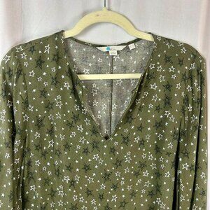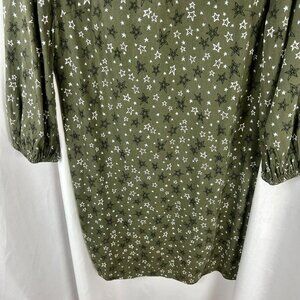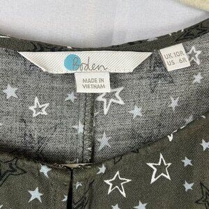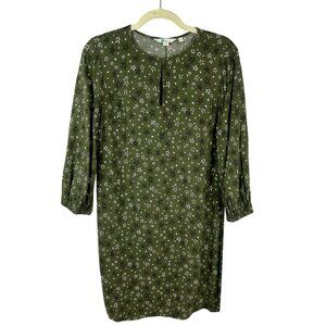 Boden Vanessa Shift Dress Women 6 Green Star Pattern Long Sleeves Mini Short