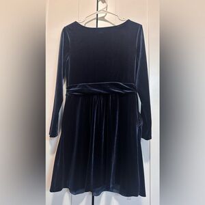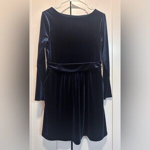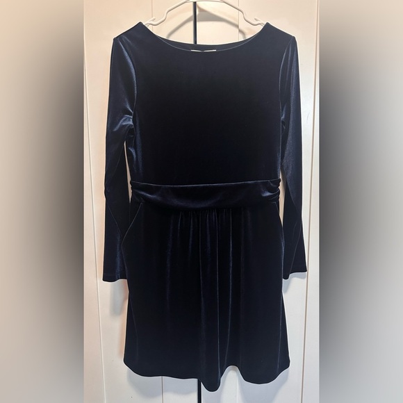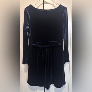 Chic navy velvet dress with long sleeves. Perfect for evening wear.