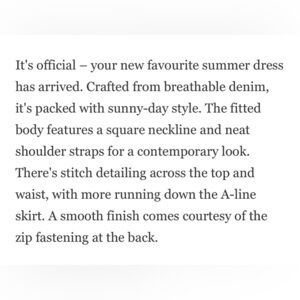 Boden Virginie a line midi dark denim sleeveless dress. This dress is the dress of summer and spring, for that matter! Thick straps at shoulder. Form fitting to waist with a line skirt. The dress has pockets! Zipper in back for easy on and off. Midi length. Excellent condition with no noted flaws. This dress is absolutely gorgeous!! women’s size 8P. Measures approximately 16 inches flat across chest from armpit to armpit, 15 inches flat across waist, with dress measuring approximately 41 inches. cameras slightly auto corrected color of denim in pictures. Dress is same as all of the stock photos.