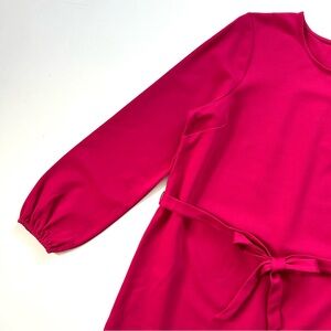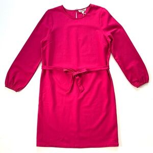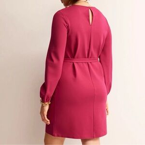 Feminine and his warm cranberry pink Violet ponte shift dress by Boden. Style D0759. Unlined. No pockets. Adjustable tie at waist. Long length. About 40” long, 22” pit to pit, 22” waist laid flat, 16” shoulder to shoulder, 24” sleeve. New with tags.