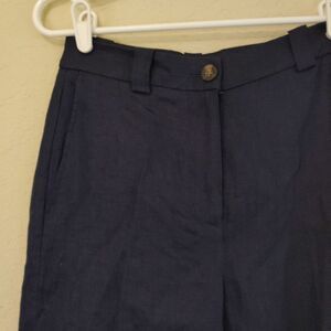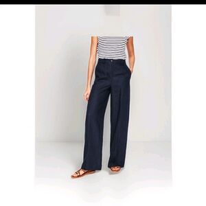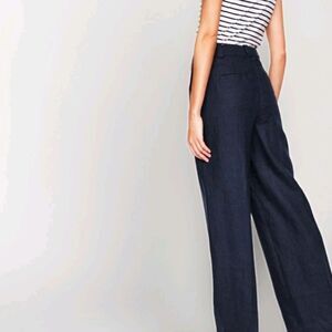 Boden Westbourne Linen Trouser Pant Sz 2L Navy Wide Leg Nautical