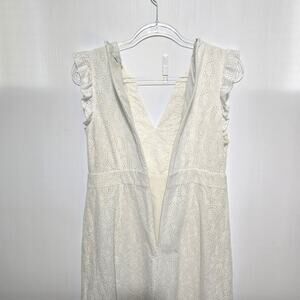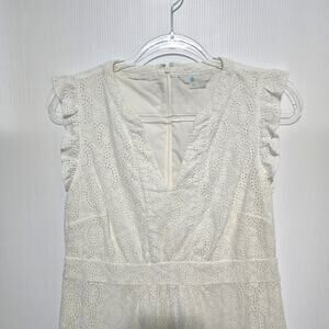 Boden White Eyelet Midi Dress Sleeveless V Neck Ruffle Detail 100% Cotton 10P