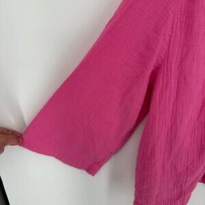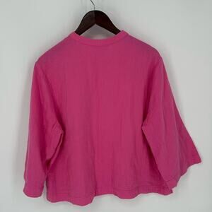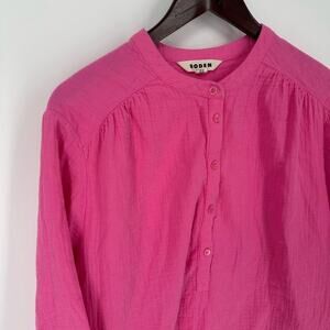 Boden Wide Sleeve Cheesecloth Top Textured Gauze Henley Crinkle Pink Size 12