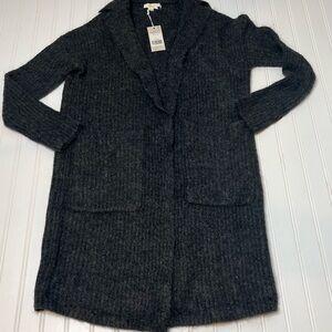 Boden Woman's Ribbed Long Open Cardigan Sweater Pockets Wool Mohair Gray XS NEW