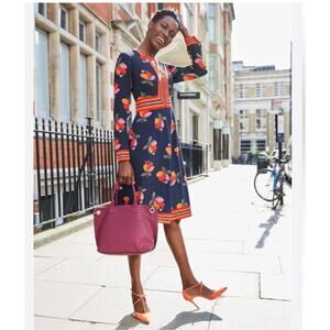Boden Women Floral Striped A Line Dress Sz. 8R Blue Lightweight Comfort Modest