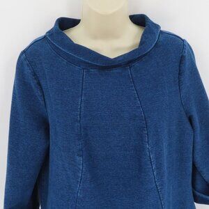 Boden Womens 10 Regular Solid Blue Denim Jean Boat Neck Shift Dress Cotton Blend