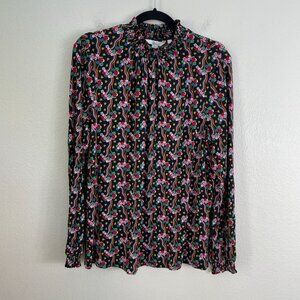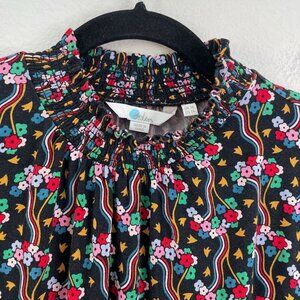 Boden Womens 14 Floral Long Sleeve Smocked Mock Neck Top Stretch Shirt