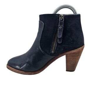 Boden Navy Suede Leather Tassel Ankle Zipper Boots