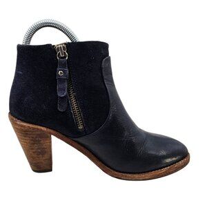 Boden Womens 36.5 Navy Suede Leather Tassel Ankle Zipper Boots