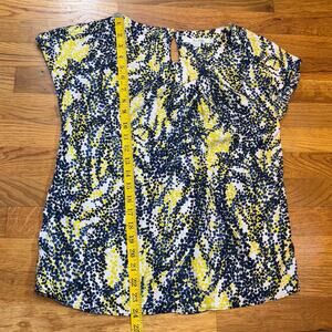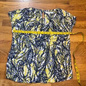 Boden Women’s 6 Blue Yellow Polka Dot Silk Blend Key Hole Short Sleeve Blouse