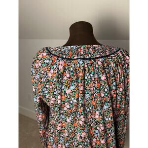 Boden Women's Black Floral Long Sleeve Georgia Smocked Jersey Top Size 12