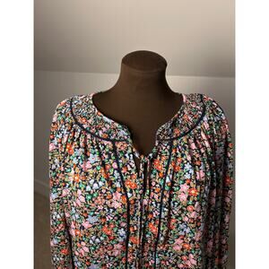Boden Women's Black Floral Long Sleeve Georgia Smocked Jersey Top Size 12 Boho