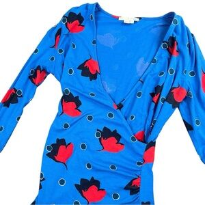 Boden Women’s Blue Floral Faux Wrap Long Sleeve Blouse In Size 8R