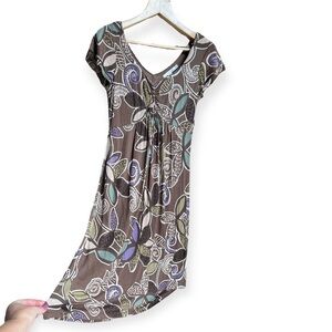 Women’s size 6 knee length dress by Boden. Brown boho floral print with short flutter sleeves and v-neck neckline. Fully lined and incredibly lightweight soft Lyocell material. In excellent pre-owned condition.
