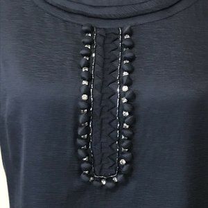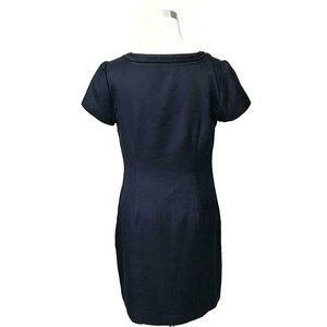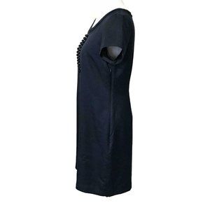 BODEN Women's Blue Ava Shift Dress embellished with rhinestones, beads and covered faux buttons. Short Sleeve. Lined. Side zipper. Style WH409