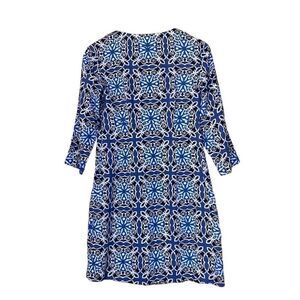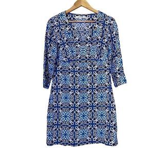 Boden Women's Casual Linen Tunic Dress in size small (4R). Imperial Blue Woodblock print.