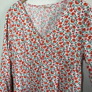Great preloved condition Boden Womens Ditzy Floral Print V Neck Linen Long Sleeve Dress 14L