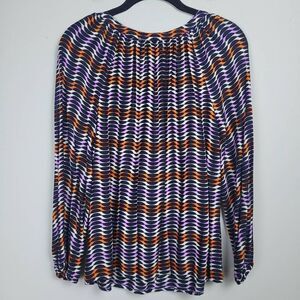 Boden Womens Dolly Top Blouse Size 8 Multicolor Purple Orange Blue Long Sleeve Popover Geometric