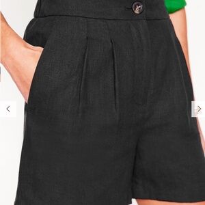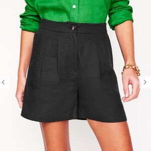 Boden | Women's Dulwich Pleated Linen BLACK Shorts | 6" Size US 12